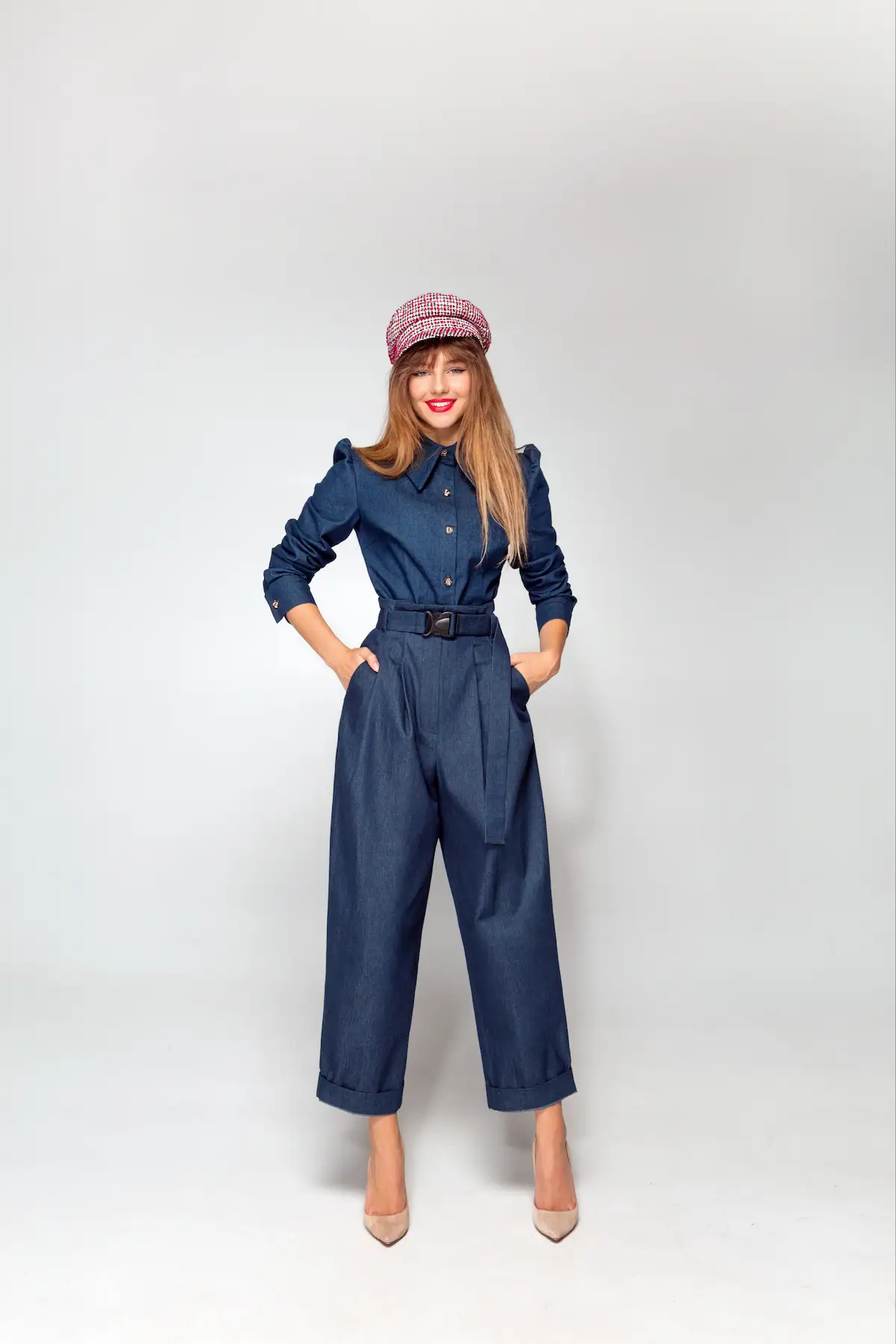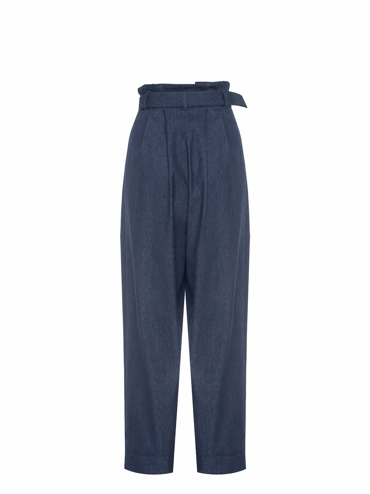 Wide jeans are tapered to the bottom with a high waist