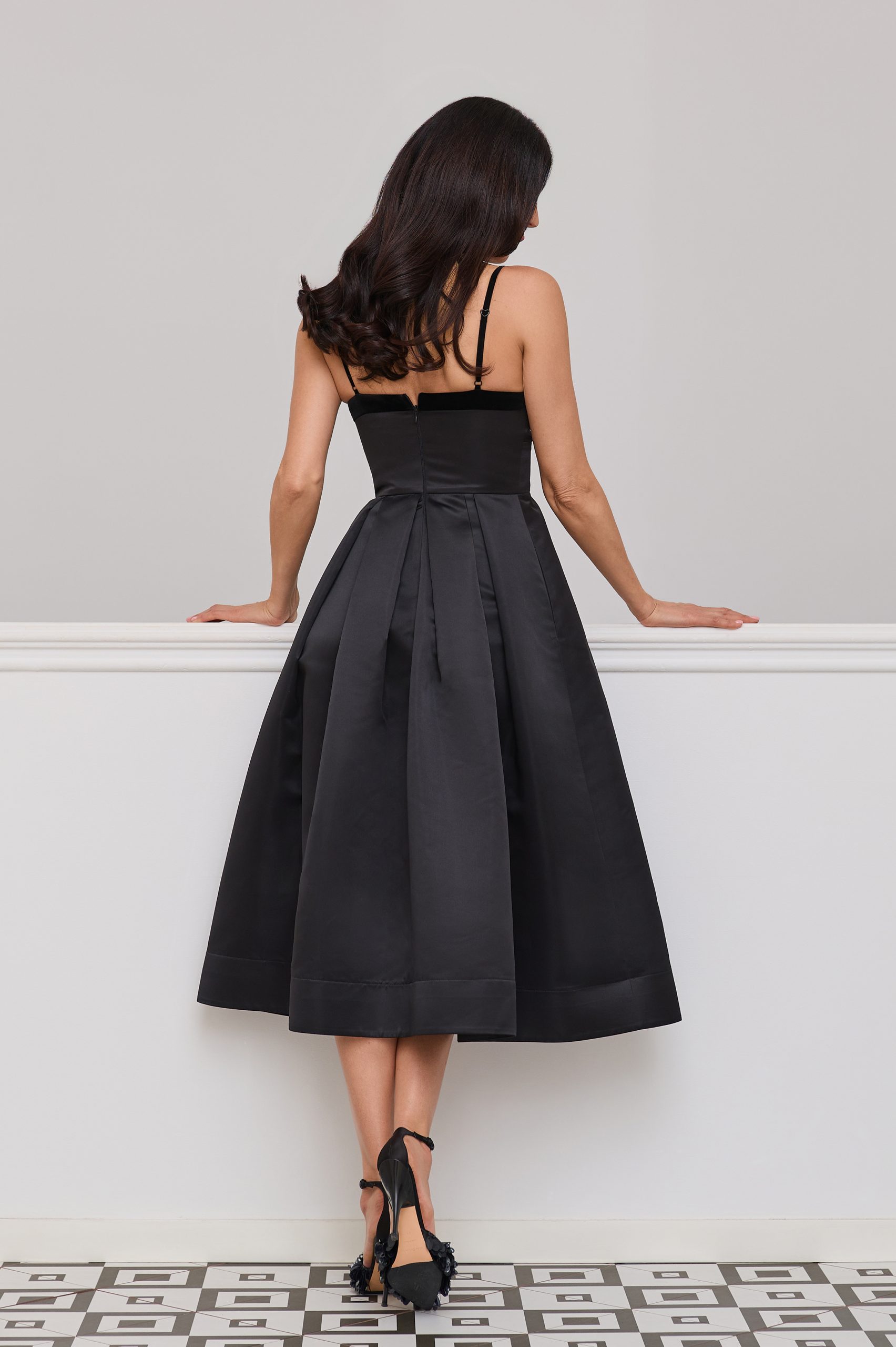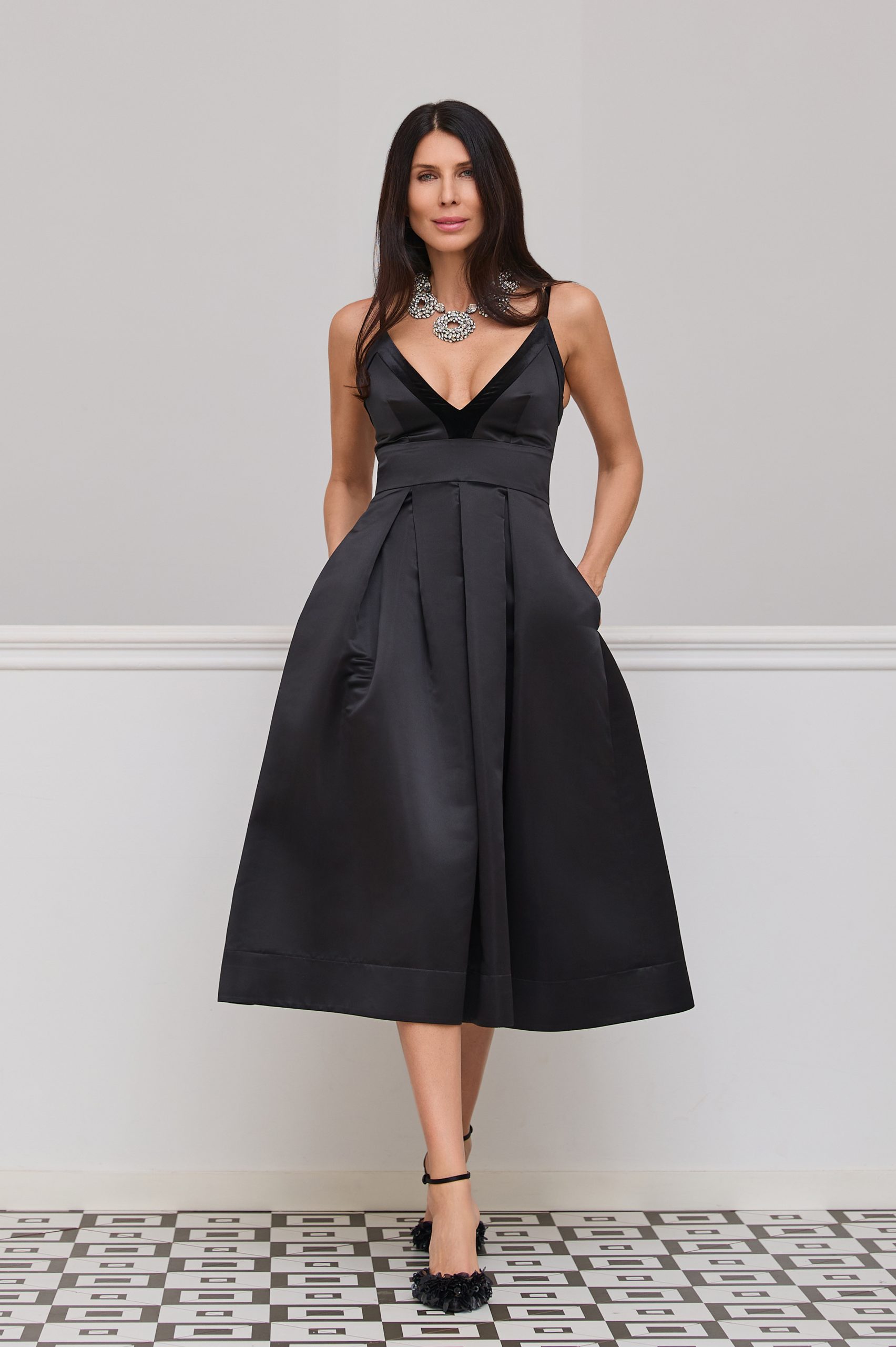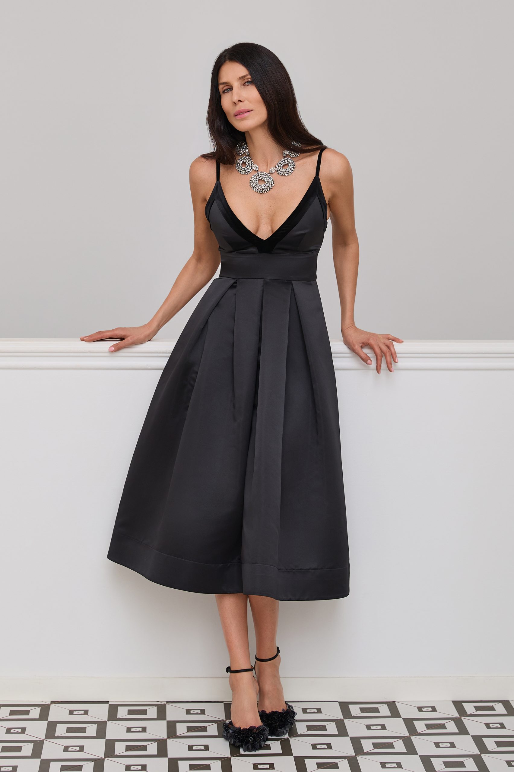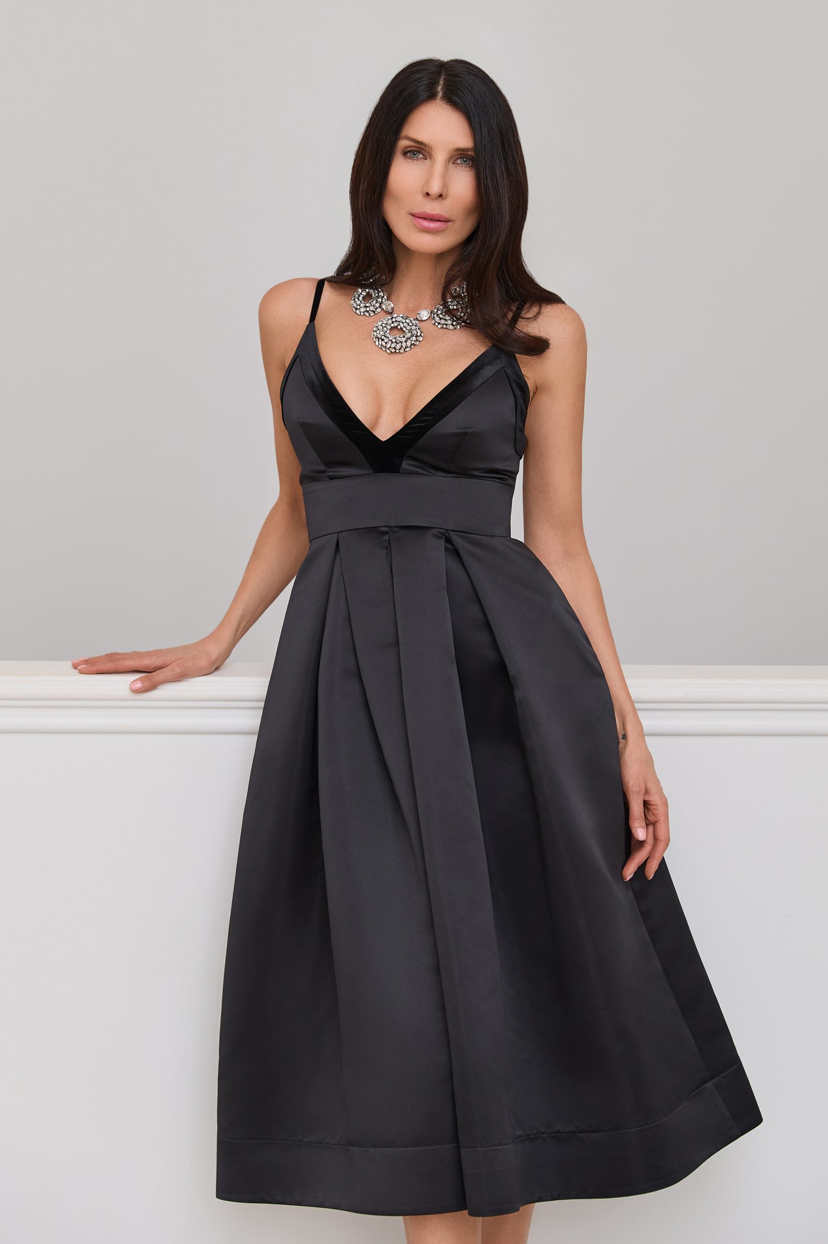 Атласне плаття з вирізом з бархатним оздобленням по грудях - Жіночий одяг BLIND - Інтернет-магазин українського бренду