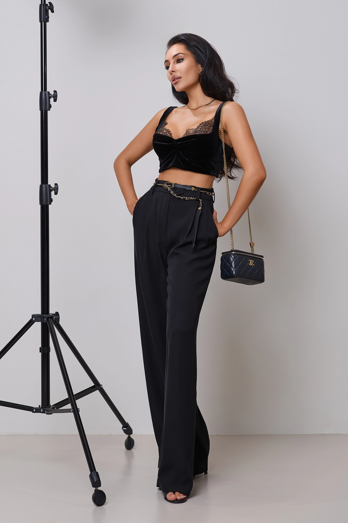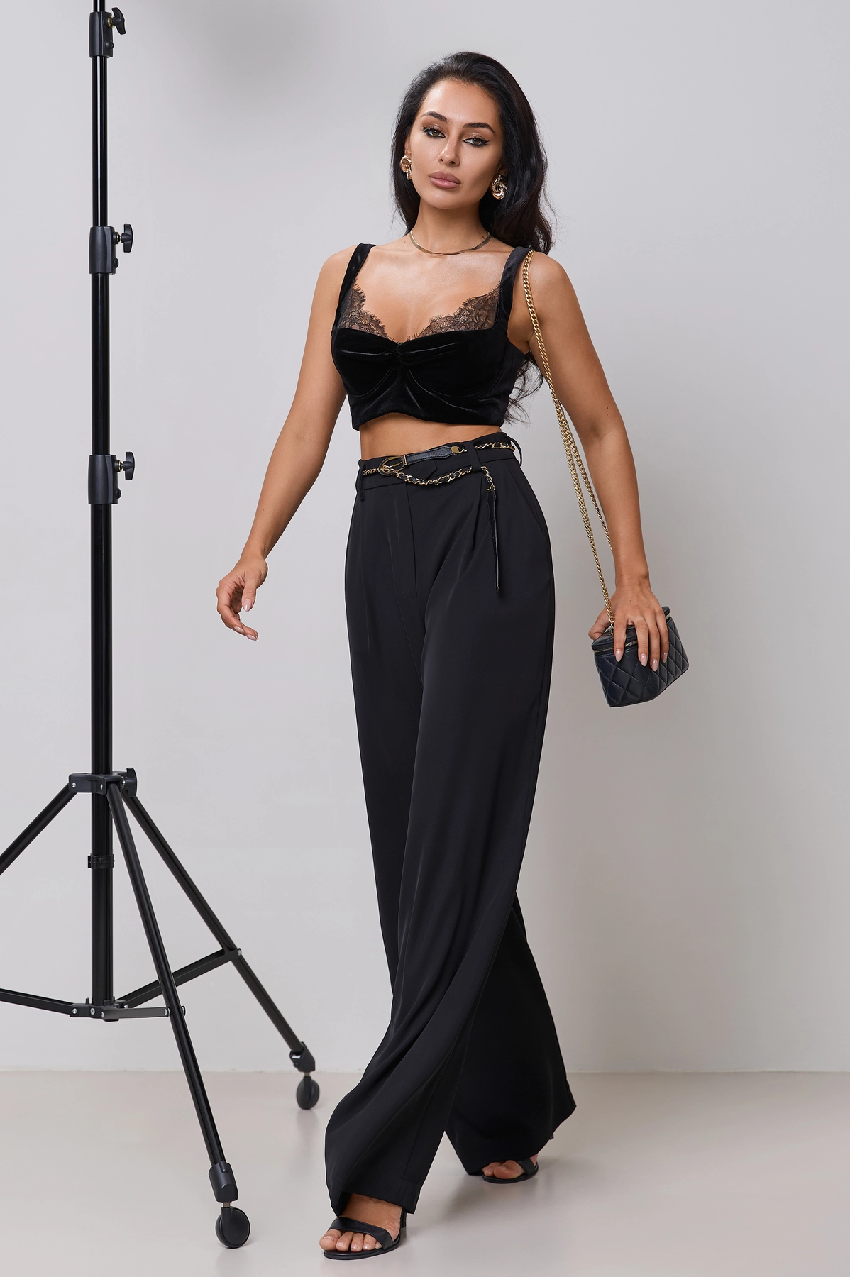 Black velvet top with lace – Жіночий одяг BLIND – Інтернет-магазин українського бренду
