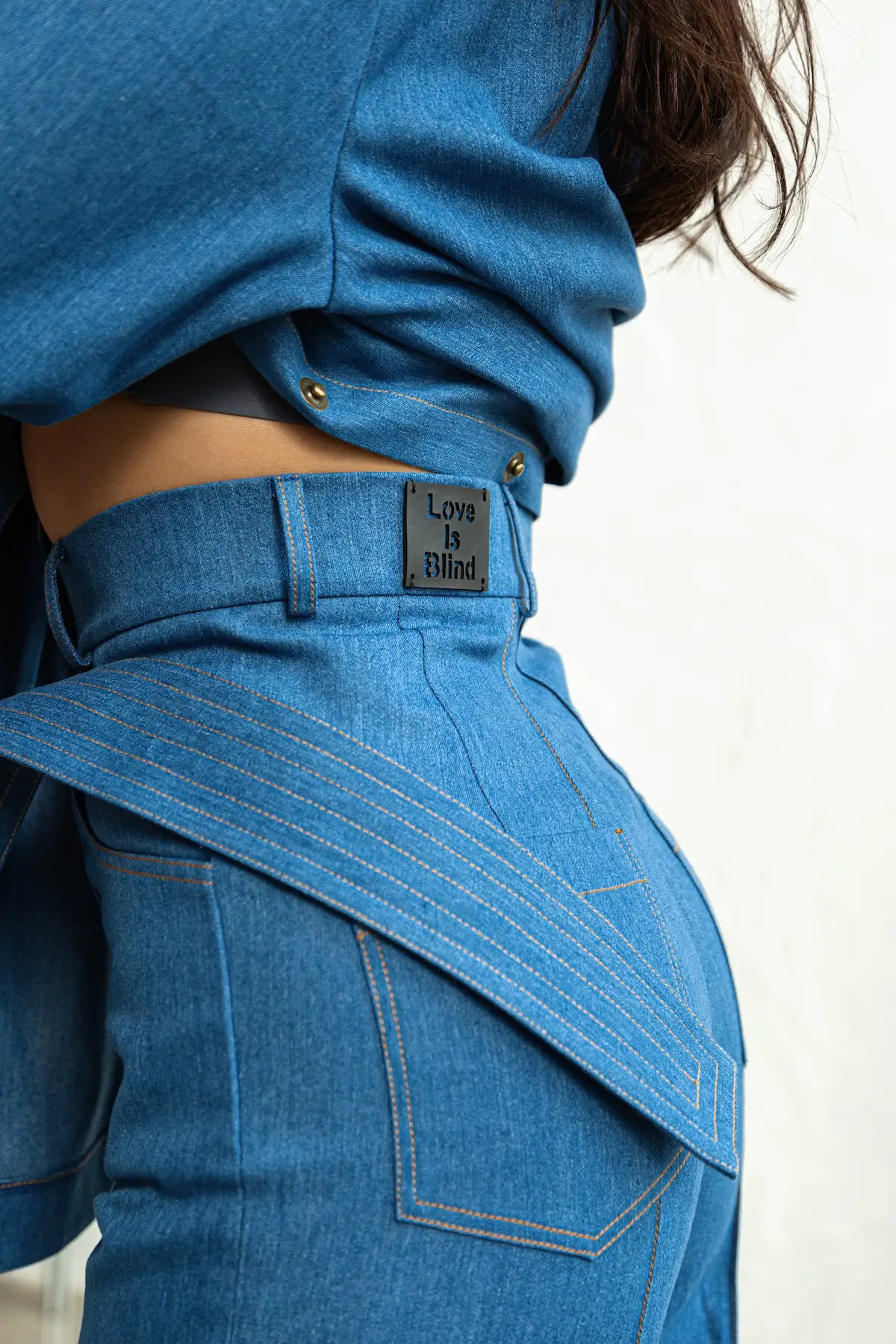 Джинсовий комбінезон з бавовняними бретелями, що відстібаються.