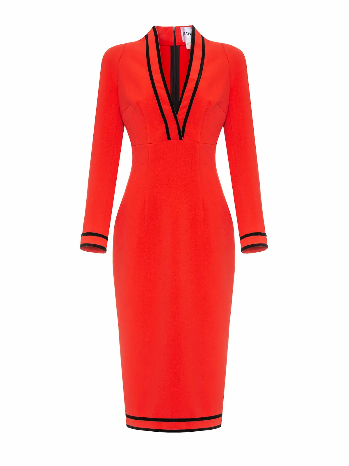 Платье-футляр цвета терракот с контрастной отделкой из черного бархата – Жіночий одяг BLIND – Інтернет-магазин українського бренду