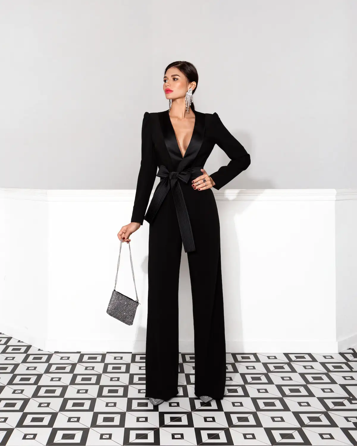 Комбінезон з атласною обробкою та поясом – Жіночий одяг BLIND – Інтернет-магазин українського бренду