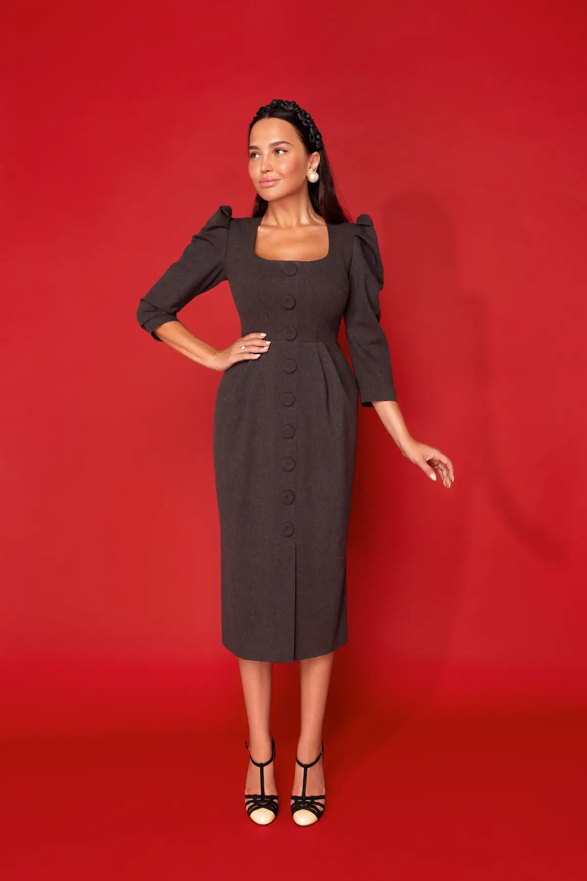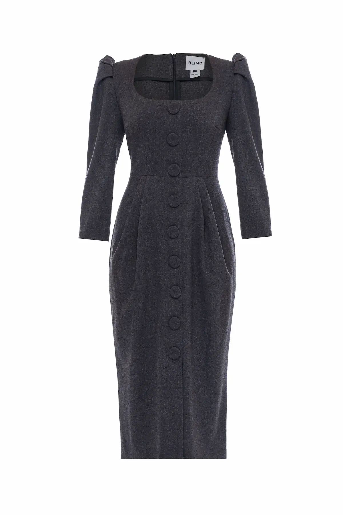 Платье-футляр серое из шерсти с пуговицами – Жіночий одяг BLIND – Інтернет-магазин українського бренду