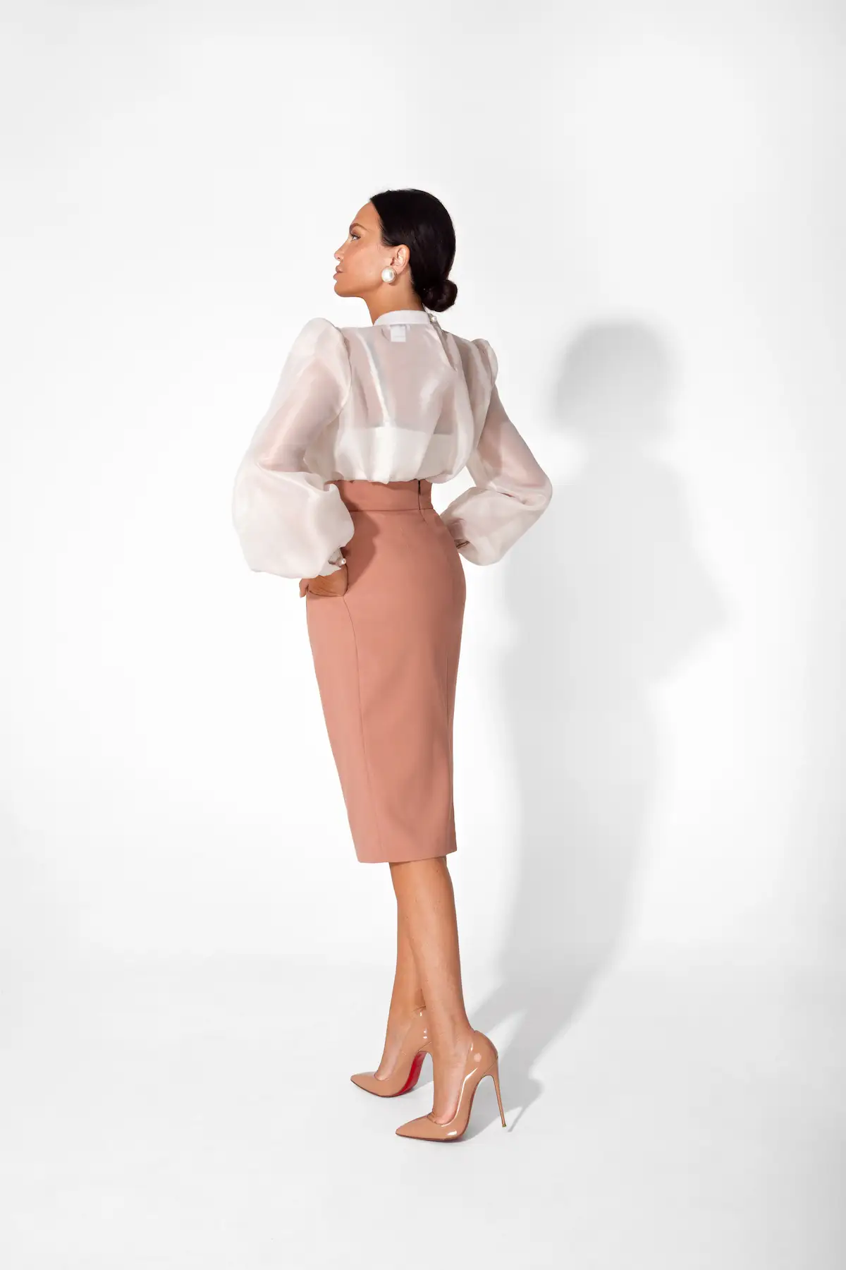 Сукня-футляр з гострим коміром, що відстібається, і манжетами